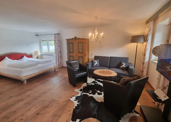 Dieses Bed and Breakfast s´Quartier am Schliersee mit Ausblick auf den Garten ist etwa 10 Gehminuten vom Markus Wasmeier Bauernhof- und Wintersportmuseum von Schliersee entfernt. In diesem Hotel finden Sie kostenlose Parkplätze, eine Sauna und eine Sonnenterrasse.